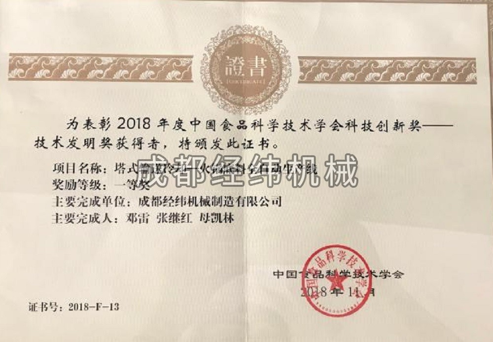 公司已通過了ISO9001質量管理體系認證,榮獲“中國食品科學技術學會推薦產品”,被認定為“高新技術企業”,歷年來均被評為“納稅大戶”,并擁有多項專利技術。